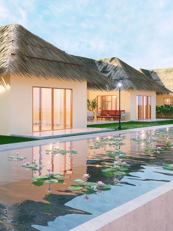 Inspired by the gentle beauty of the water lily, Aambal is a serene retreat where nature and design flow in harmony. Swans glide across tranquil ponds, ostriches wander gracefully through the landscape, and the hum of windmills blends softly with the breeze, creating an atmosphere of peace and wonder. Set amidst lush greenery, the resort fuses Balinese elegance with tropical charm, offering both traditional warmth and modern comfort.