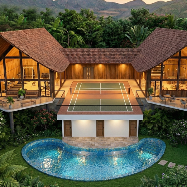 Inspired by the gentle beauty of the water lily, Aambal is a serene retreat where nature and design flow in harmony. Swans glide across tranquil ponds, ostriches wander gracefully through the landscape, and the hum of windmills blends softly with the breeze, creating an atmosphere of peace and wonder. Set amidst lush greenery, the resort fuses Balinese elegance with tropical charm, offering both traditional warmth and modern comfort.